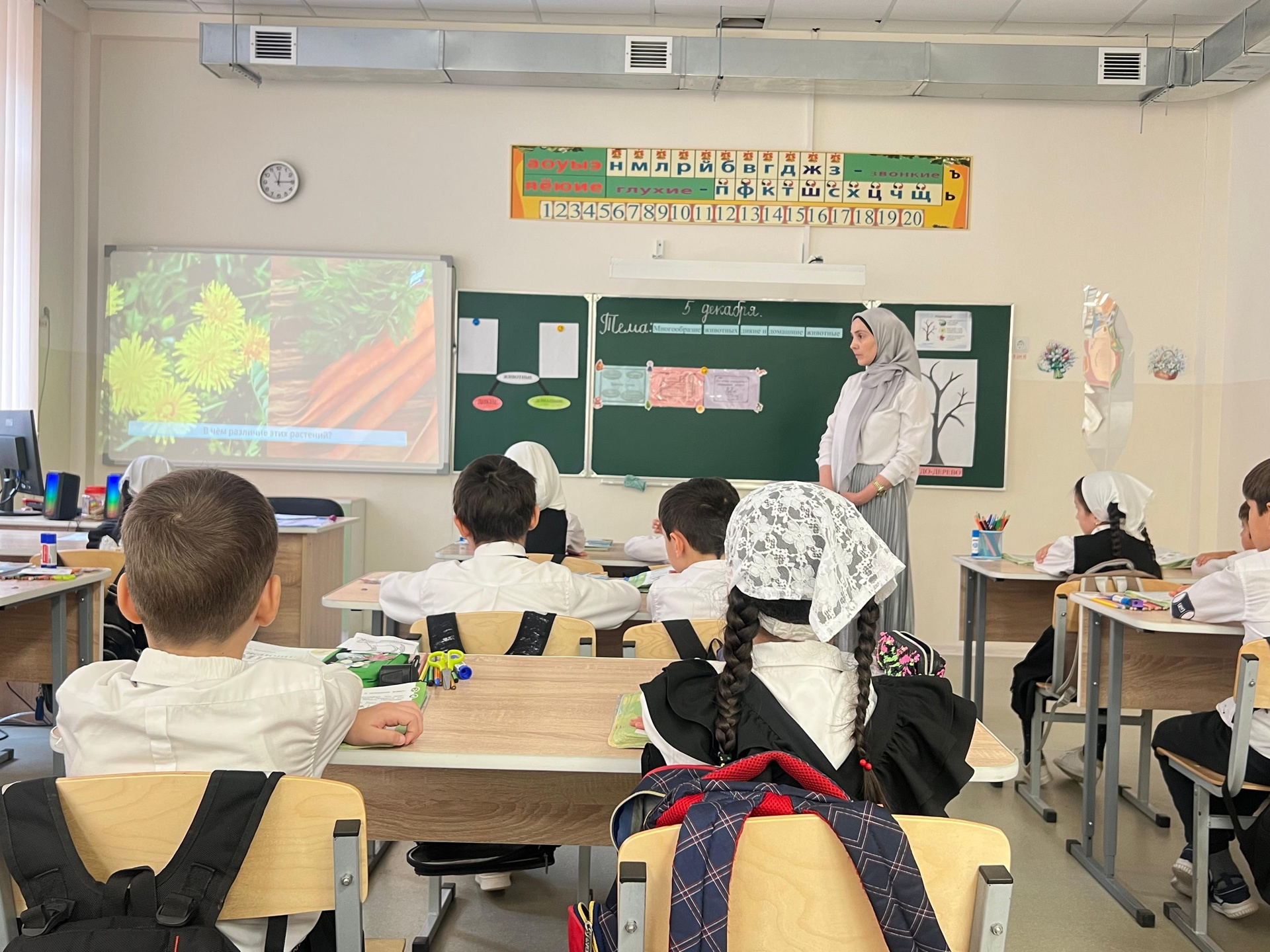 05.12.2024Классный руководитель Алиева Мукминат Сайд-Магоммедовна. Тема урока:Многообразие животных. Дикие и домашние животные.Цель урока:сформировать первоначальные знания о диких и домашних животных, их сходстве и различиях; показать разнообразие домашних животных, их значение для человека.
